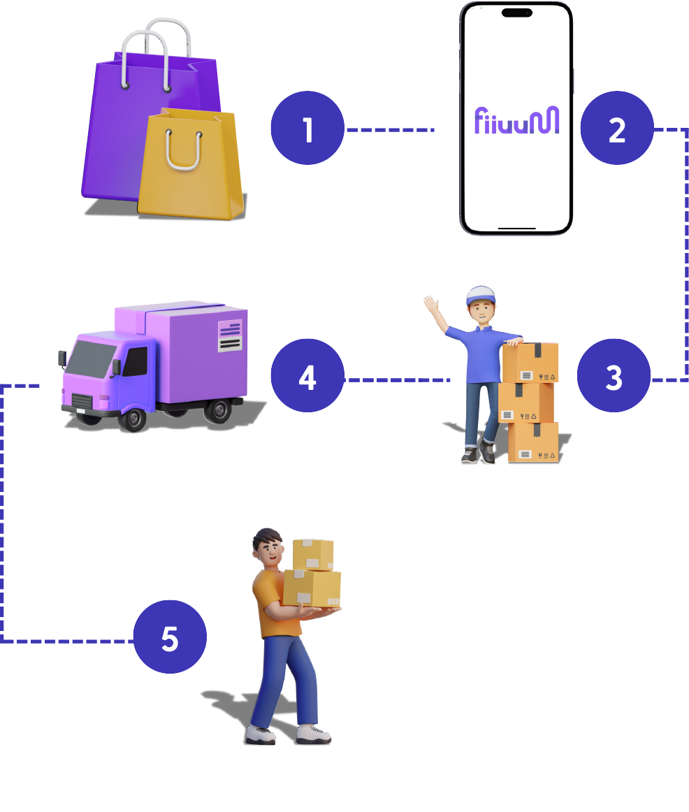 Abre la App móvil Fiiuum. Ingresa la información de tu mercancía. Realiza el pago correspondiente.